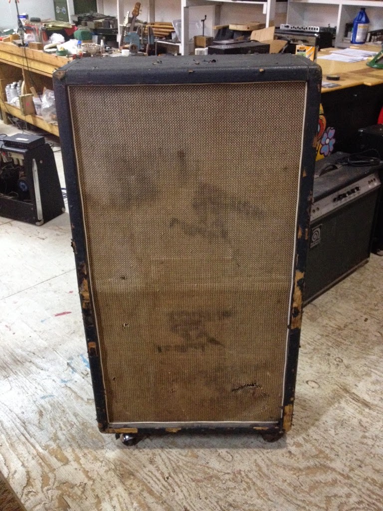 Last year we had a customer bring us a classic 1970’s Marshall 8×10. The cab was in pretty poor shape – even the finger joints were starting to loose. At Steamboat we stripped her down, patched up the damaged areas, and replaced all of the tolex, grill cloth, piping and handles. Finally we re-wired the cabinet and she was like new…again!